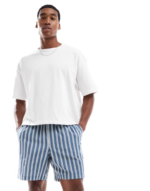 New Look – Niebieskie wsuwane lniane szorty w paski