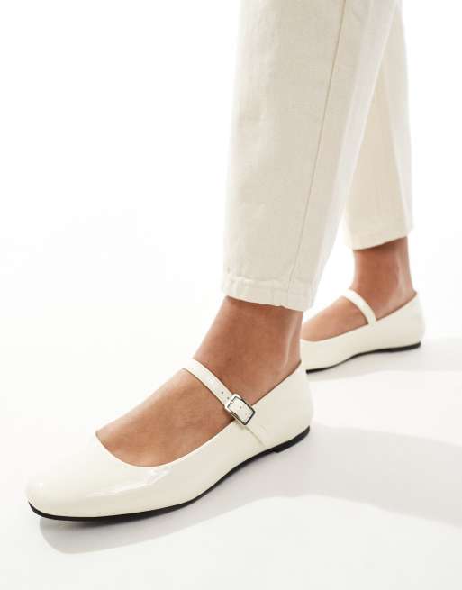 New Look – Płaskie kremowe balerinki Mary Jane