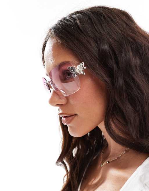 New Look – Różowe okulary przeciwsłoneczne bez oprawek z motylkami