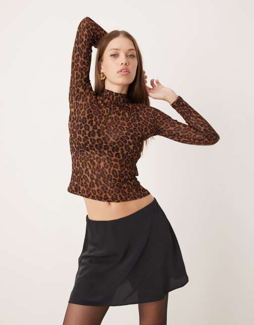 New Look – Siateczkowy top z długim rękawem i golfem we wzór w cętki