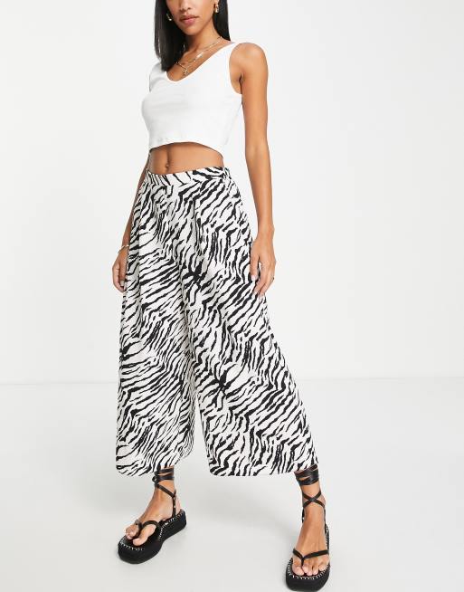New Look – Spodnie z szerokimi nogawkami o krótkim fasonie w paski zebry
