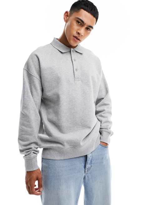 New Look – Szara melanżowa bluza dresowa z kołnierzykiem polo