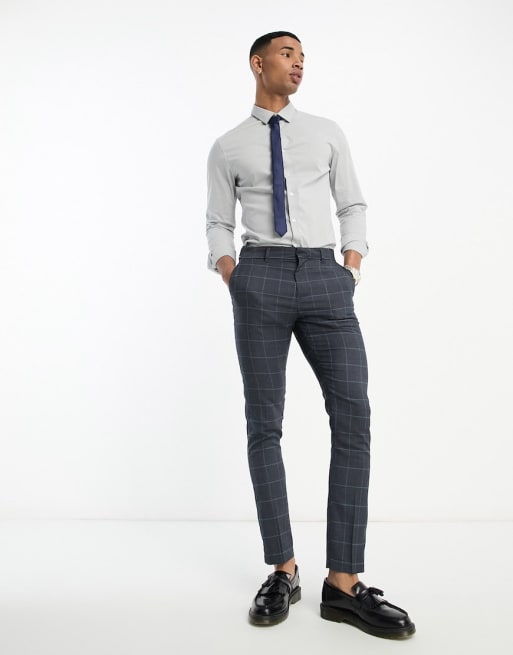 New Look – Szaro-niebieski obcisły garnitur w kratę