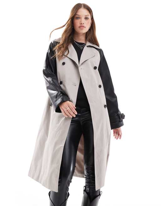 New Look – Szarobeżowy płacz przeciwdeszczowy z rękawami poliuretanowymi