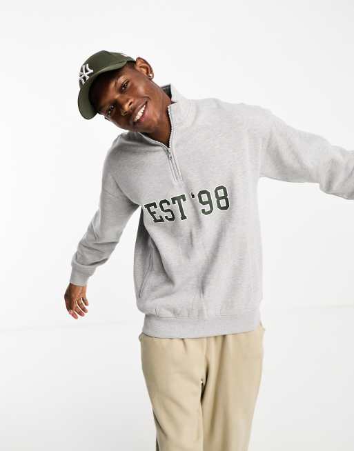 New Look – Szary melanżowy top z zabudowanym dekoltem i suwakiem pod szyją w uczelnianym stylu