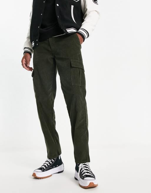 New Look – Sztruksowe spodnie bojówki o prostym kroju w kolorze khaki