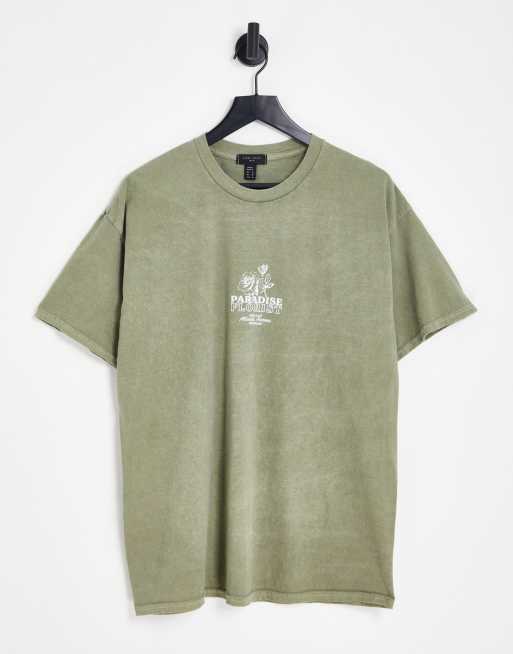 New Look – T-shirt w kolorze khaki z kwiatem i napisem „Paradise"