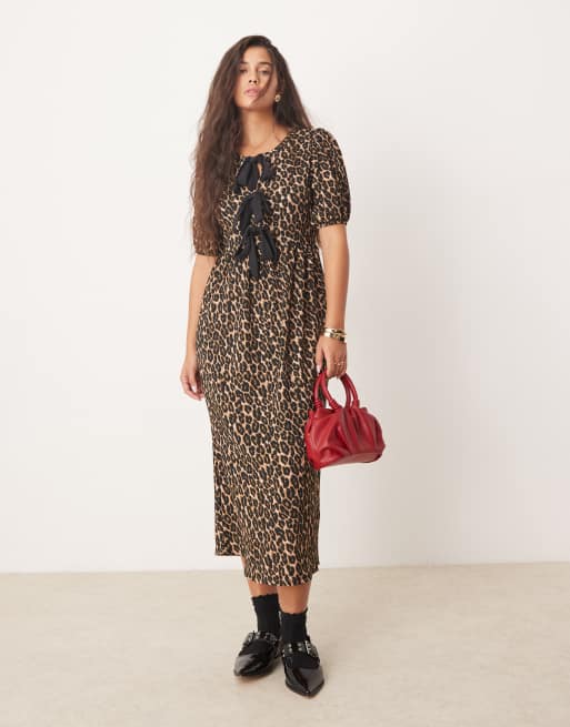 New Look – Wiązana z przodu sukienka midi w panterkę