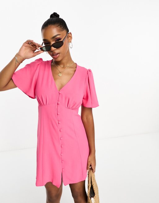New Look – Zapinana na guziki różowa sukienka mini