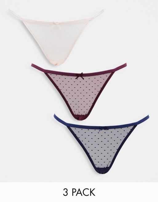New Look – Zestaw 3 par siateczkowych fig od bikini w groszki w różnych kolorach