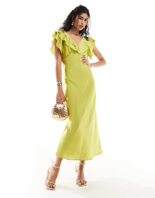 New Look – Zielona sukienka midi z falbanką przy rękawach