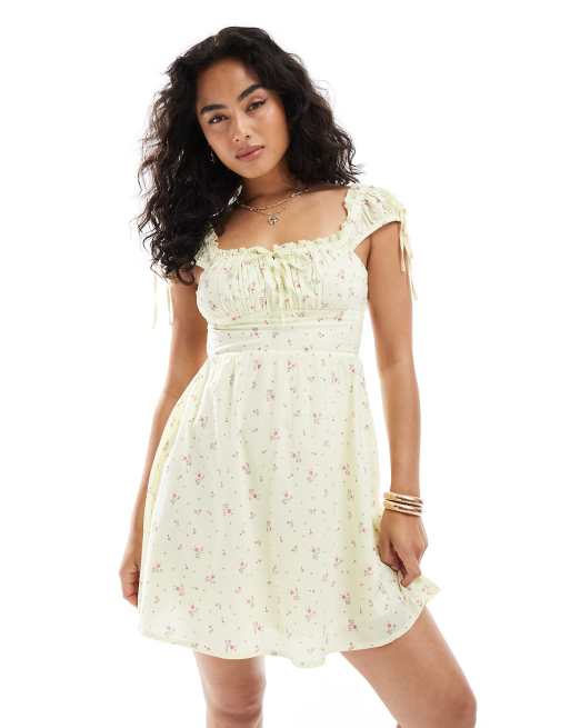 New Look – Żółta sukienka mini typu milkmaid w kwiatowy wzór