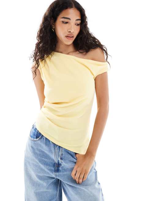 New Look – Żółty top z opadającym ramieniem z materiału scuba