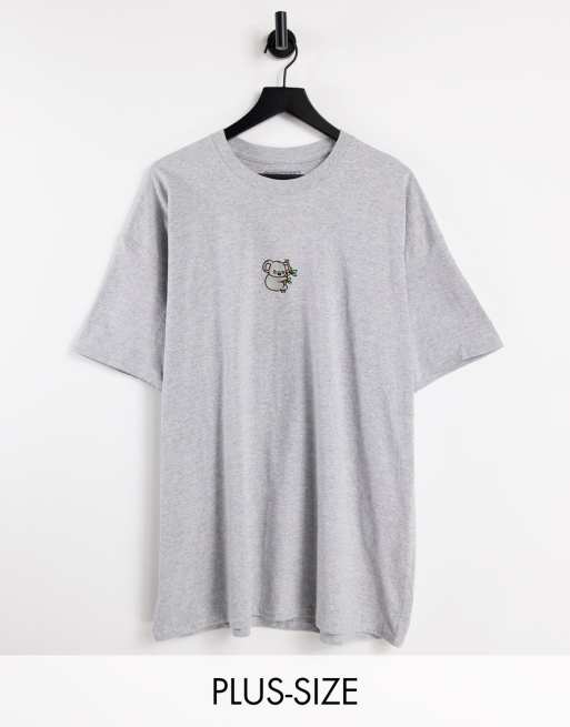 New Love Club Plus – Szary T-shirt oversize z wyhaftowanym misiem koala