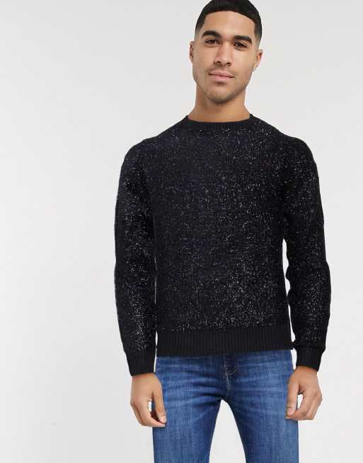 Night Addict – Czarny metaliczny sweter z okrągłym dekoltem