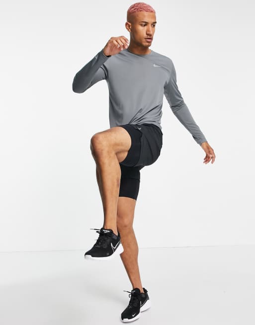 Nike Running – Miler Dri-FIT – Szary T-shirt z długimi rękawami