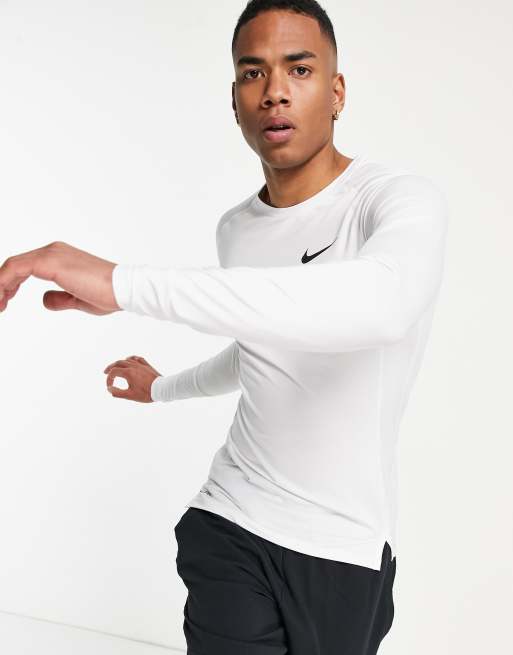 Nike Pro Training – Biały top termoaktywny z długim rękawem
