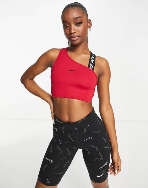 Nike Pro Training – Swoosh Dri-FIT – Różowy asymetryczny biustonosz sportowy zapewniający średnie wsparcie