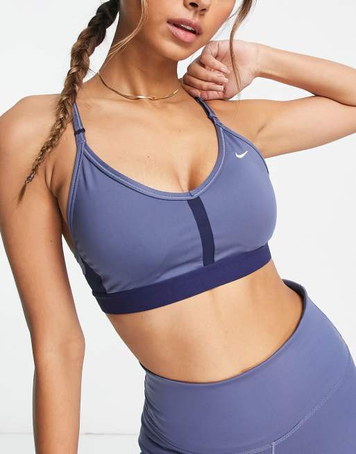Nike Training – Indy Dri-FIT – Niebieski biustonosz sportowy o lekkim wsparciu z dekoltem w szpic