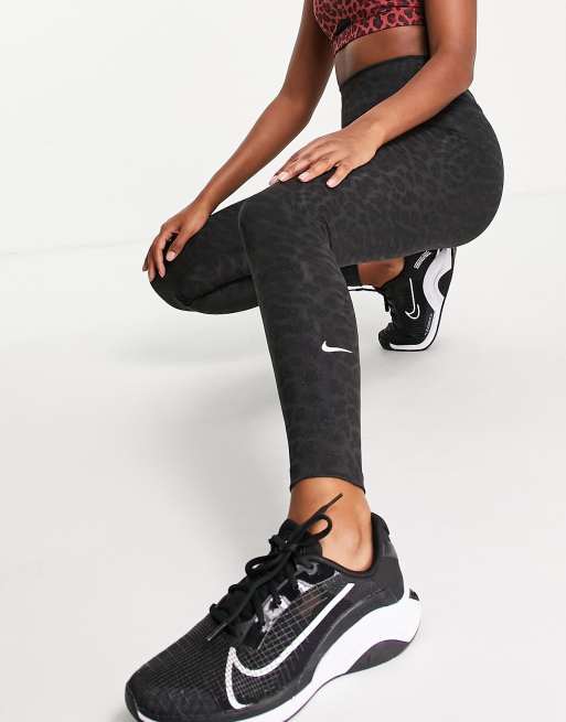 Nike Training – One – Czarne legginsy w błyszczącą panterkę