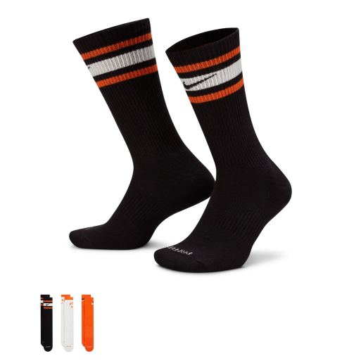 Nike Training Unisex – Zestaw 3 par skarpetek z amortyzacją i logo w kolorach białym, czarnym i pomarańczowym
