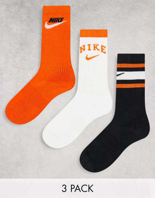 Nike Training – Zestaw 3 par skarpetek w stylu retro w kolorach białym, czarnym i pomarańczowym