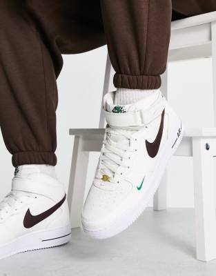 Nike – Air Force 1 Mid '07 LV8 – Biało-brązowe buty sportowe – 40. rocznica modelu