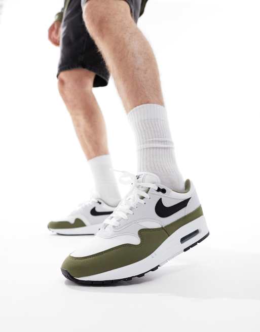 Nike – Air Max 1 – Biało-oliwkowo-czarne buty sportowe