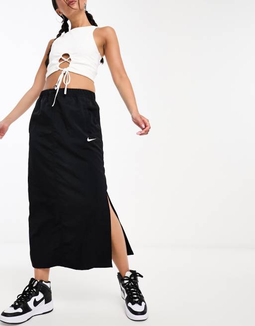 Nike – Czarna spódnica maxi z tkaniny z małym logo Swoosh