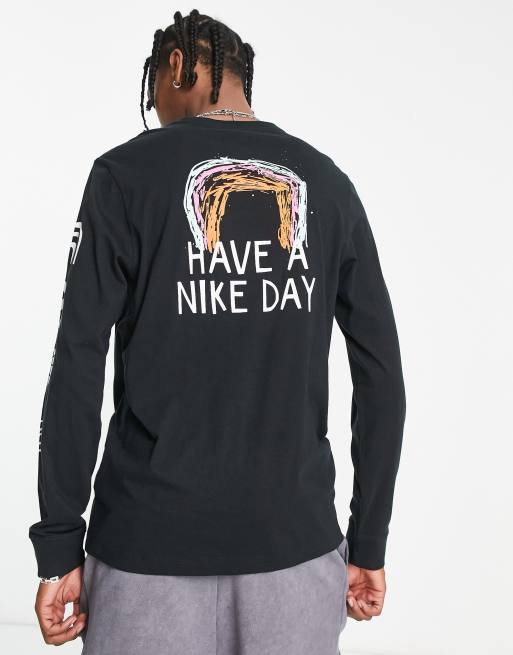 Nike – Czarny T-shirt z długimi rękawami, grafiką i nadrukiem na rękawach