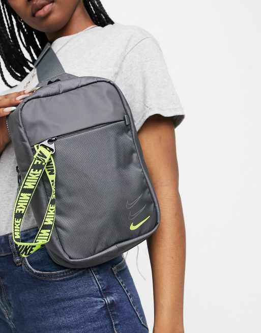 Nike – Essential – Szara torebka crossbody z neonowym żółtym zamkiem z taśmą z przodu