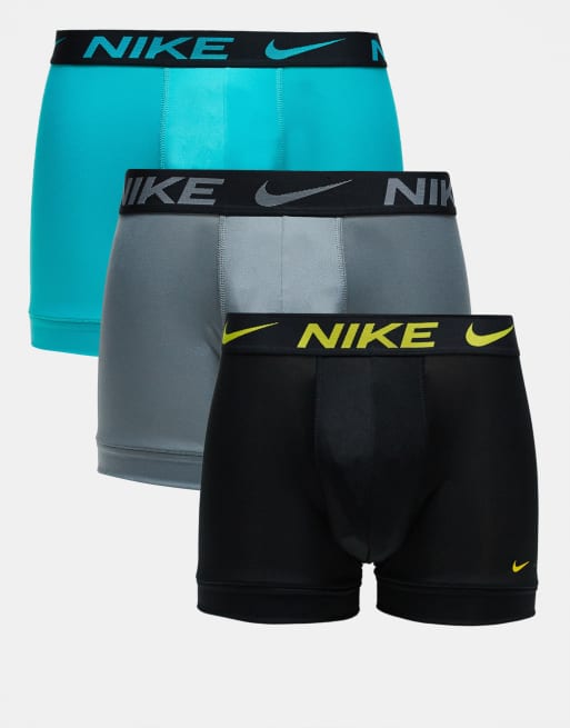 Nike – Essential – Zestaw 3 par bokserek z mikrofibry Dri-FIT w kolorze niebieskim/ czarnym/ szarym