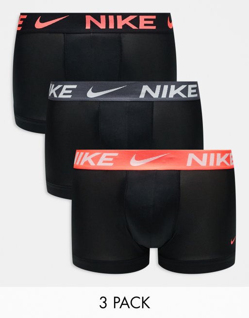 Nike – Essential – Zestaw 3 par bokserek z mikrofibry z taśmą w talii w kolorze czerwonym, różowym i szarym