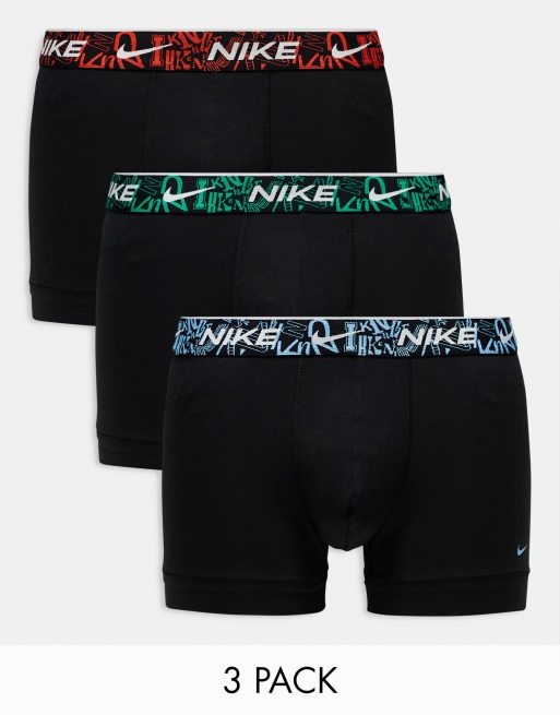 Nike – Everyday Cotton – Zestaw 3 par czarnych bokserek z graffiti w talii