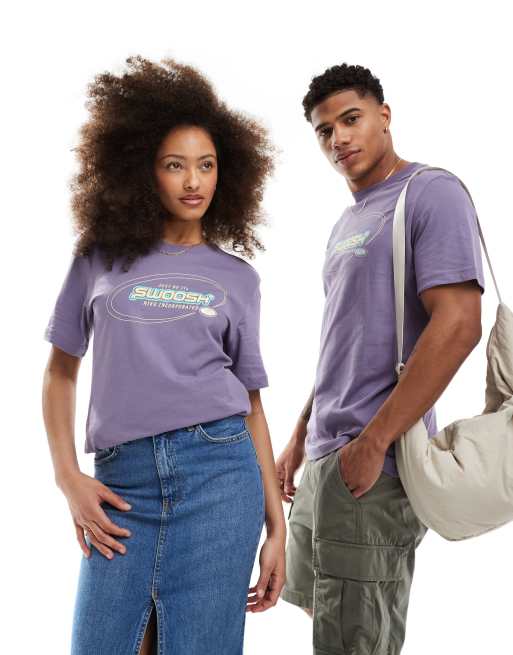 Nike – Fioletowy T-shirt unisex z grafiką z motywem Swoosh