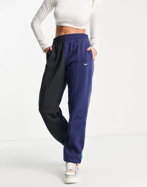 Nike – Granatowe joggersy z blokami kolorów i metalicznym logo Swoosh