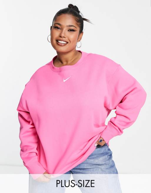 Nike Plus – Różowa bluza unisex z okrągłym dekoltem o fasonie oversize z małym logo Swoosh
