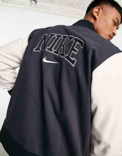 Nike – Polarowa kurtka w uniwersyteckim stylu retro w kolorze złamanej bieli i spranej czerni