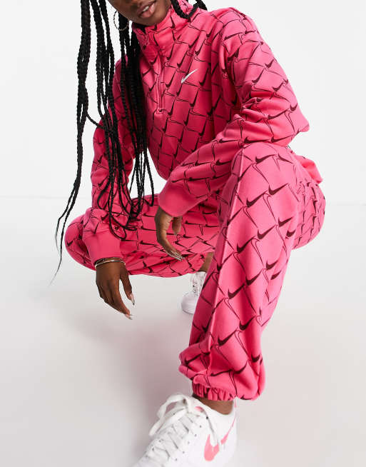 Nike – Różowe joggersy oversize we wzór w melony z logo Swoosh na całej powierzchni