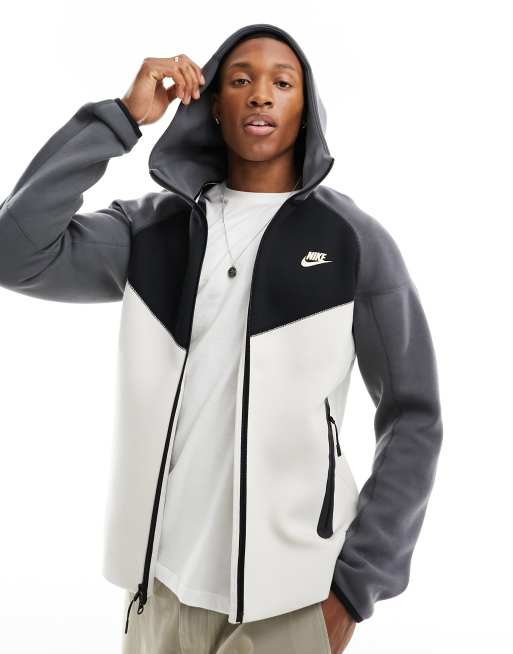 Nike Tech Fleece – Biało-szaro-czarna bluza z kapturem zapinana na zamek