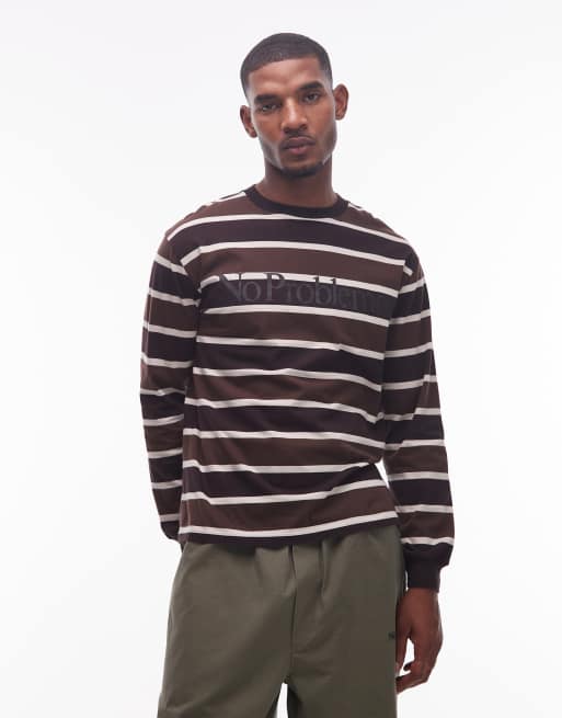 No Problemo – Brązowy bawełniany T-shirt z długimi rękawami w z logo