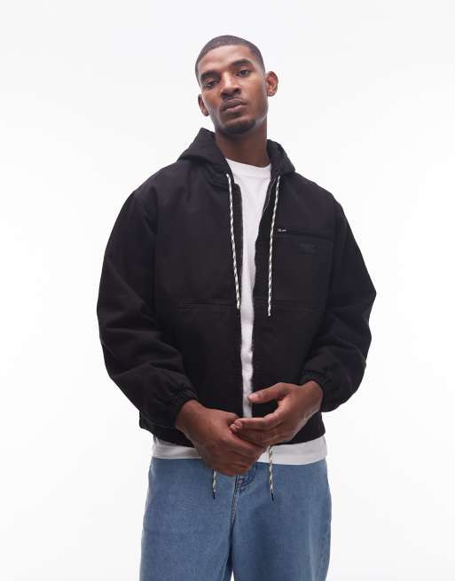No Problemo – Czarna bawełniana kurtka typu worker zapinana na zamek z kapturem