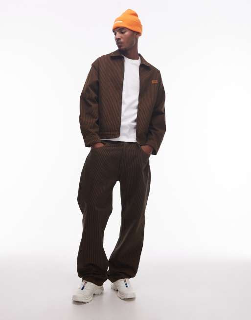 No Problemo – Nayoka – Brązowe bawełniane jeansy baggy w paski, część zestawu