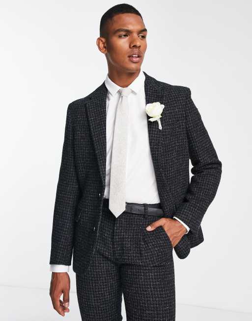 Noak – Harris – Dopasowana tweedowa marynarka garniturowa w kolorze czarnym w pepitkę