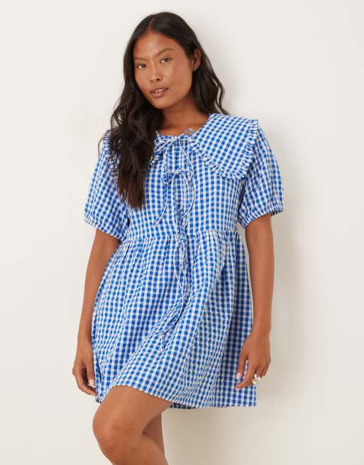 Nobody's Child Petite – Blaze – Sukienka mini z kołnierzem w niebieską kratkę vichy