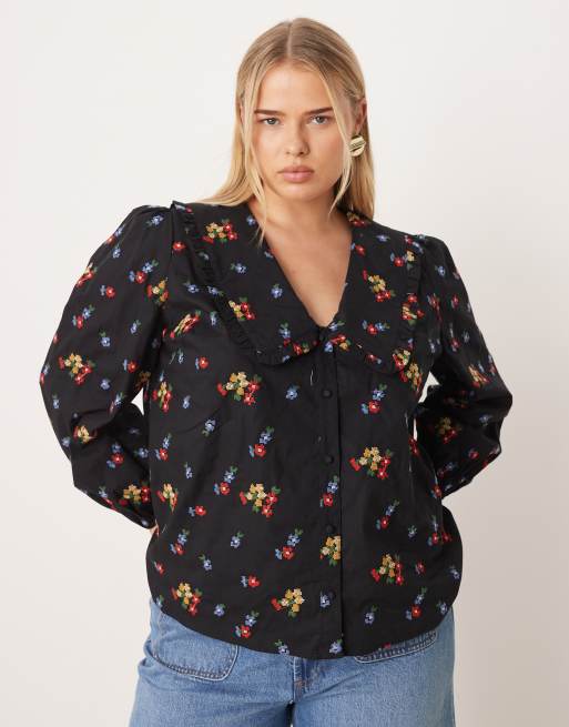 Nobody's Child Plus – Czarna luźna bluzka w kwiaty