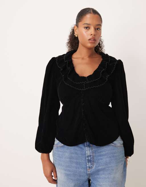 Nobody's Child Plus – Edie – Czarno-biała bluzka z balonowymi rękawami w kratkę vichy