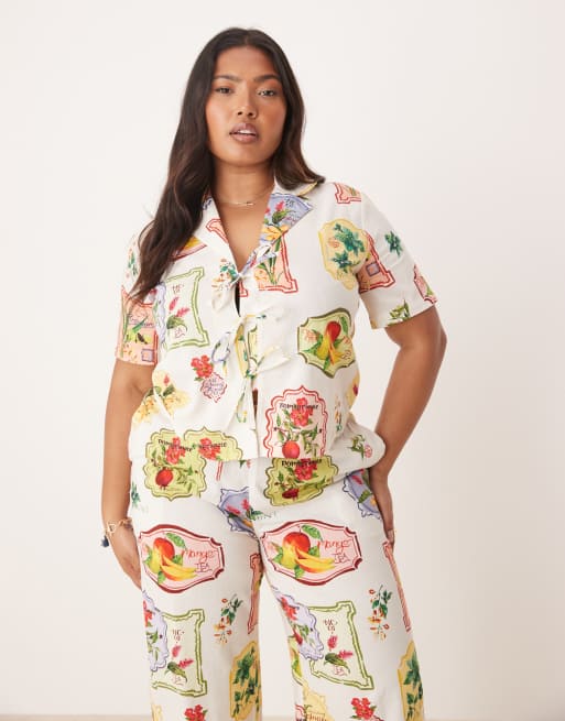 Nobody's Child Plus – Harper – Wiązana koszula w pocztówkowy wzór w owoce, część zestawu