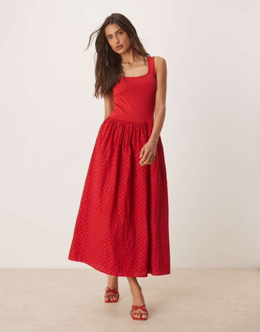 Nobody's Child – Colorado – Czerwona sukienka midi ze spódnicą z haftem angielskim
