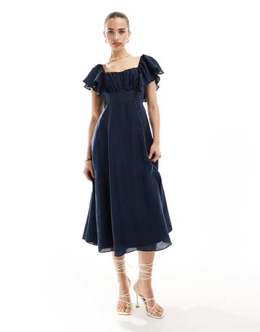 Nobody's Child – Dove – Granatowa sukienka midaxi marszczona na biuście